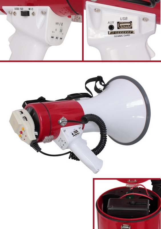 Профессиональный мегафон на аккумуляторе 45 ватт, проигрыватель MP3: Bluetooth, USB, MicroSD ...