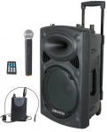 Портативная 15" колонка на аккумуляторе с усилителем 800W и 2-я радио микрофонами +MP3/Bluetooth/FM/ ...