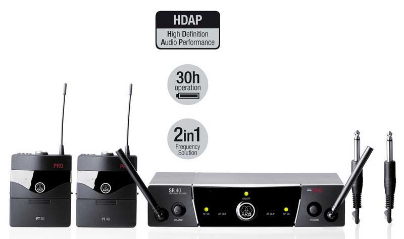 Отличаются великолепным звуком и простотой в эксплуатации. Уникальная технология HDAP (High Definition Audio Performance) обеспечивает реалистичный звук непревзойденного качества в любых условиях. Одна фиксированная частота в UHF диапазоне. 7 каналов с различными несущими частотами в диапазоне 710 - 865 МГц. Экономичная альтернатива для одновременной работы двух передатчиков. Два приемника в одном корпусе. Цельнометаллический корпус приемника SR 40 DUAL с индикаторами приема и наличия аудио сигнала. 2 поясных передатчика PT 40 PRO укомплектованы кабелями для подключения инструментов. Передатчик работет со всеми микрофонами обозначенными литерой L. Питание от одной батареи АА (1.5В). Время работы передатчика до 30 часов. Дальность приема радиосигнала 100 метров. Звуковой диапазон: 40 - 20000 Гц. Соотношение сигнал/шум: 110 дБ |
