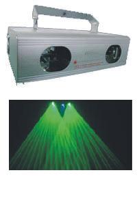 Красно-зеленый лазер, создающий эффект расходящихся из одной точки многомужество ярких лучей ...