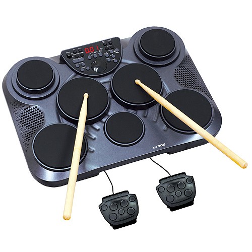 Компактная настольная электронная ударная установка с семью пэдами и двумя педалями. ...