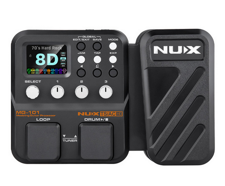NUX MG-101 улучшает ваше музыкальное исследование благодаря встроенному фразовому луперу и универсальной драм-машине с автоопределением темпа. Вы можете выбрать СТЕРЕО или МОНО режим (Стерео-луп длится 20 секунд, Моно-луп – 40 секунд). Он включает в себя мощный процессор обработки сигнала, который управляет алгоритмом моделирования усилителя White-Box высокой четкости (TSAC-HD) и пост-эффектами Core-Image. А также предлагает вам: 10 сигнальных блоков, 12 слотов IR COLLECTION, блок P.L с настройкой положений MIN/MAX и PRE/POST.