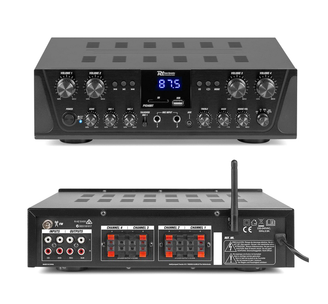 Интеллектуальный многоканальный усилитель, оснащенный передовой беспроводной технологией Bluetooth 4.2, которая работает со всеми новейшими устройствами, включая смартфоны, планшеты, ноутбуки и компьютеры. Данный усилитель подходит для использования дома, в офисе, в не больших заведениях, караоке барах и ресторанах.